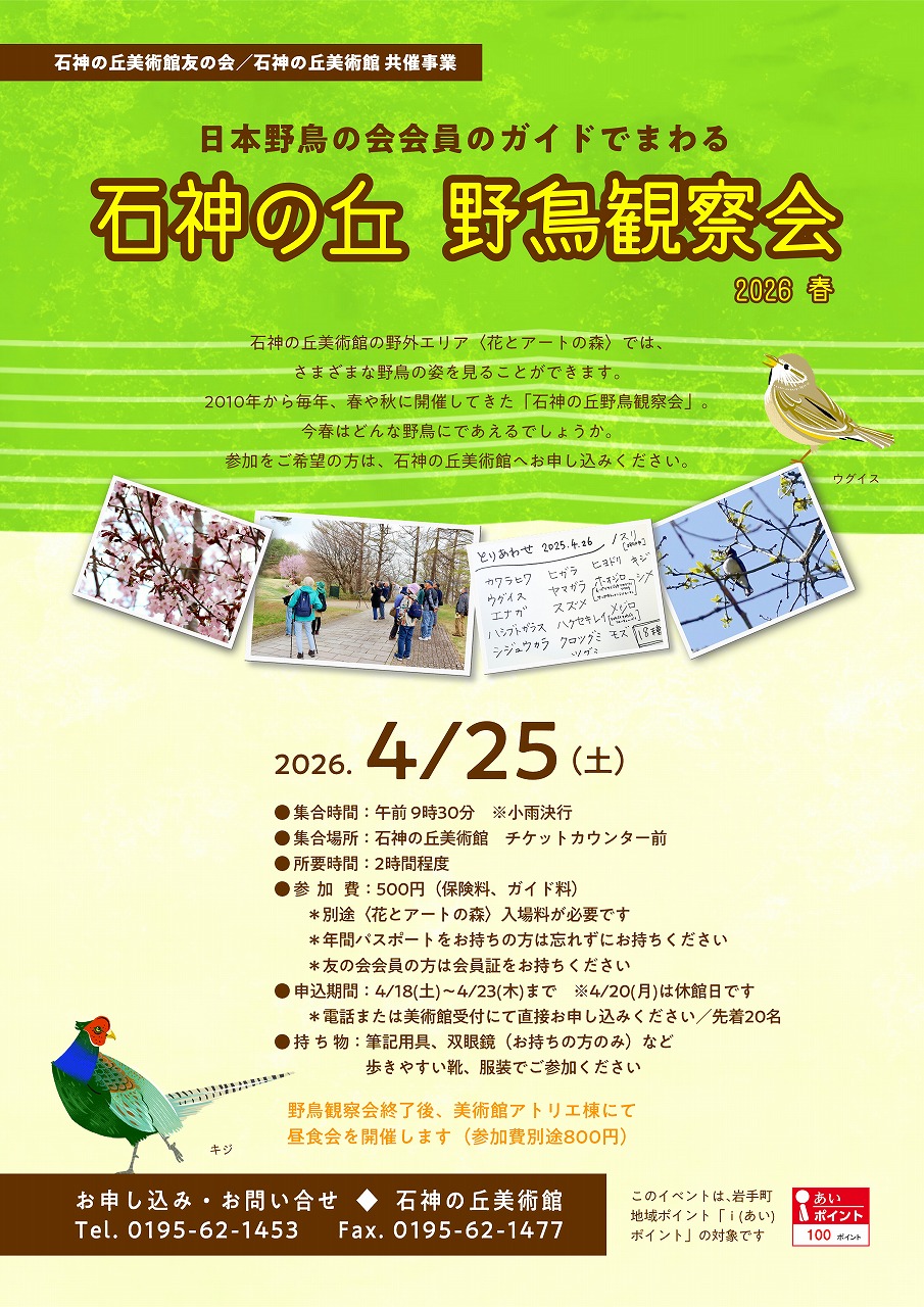 石神の丘 野鳥観察会 【2026春】